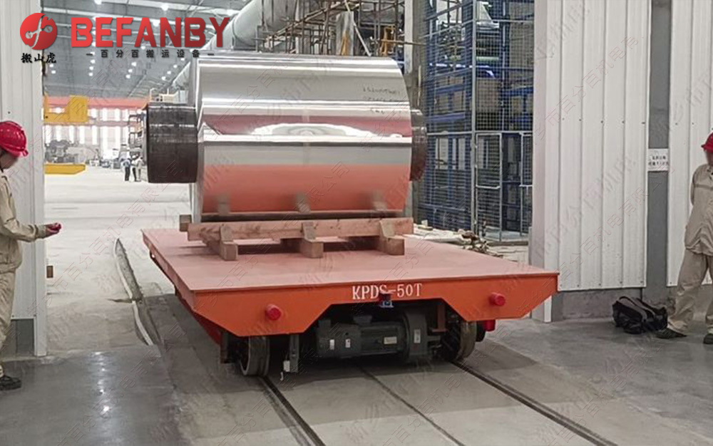 鋼包轉(zhuǎn)運電動平車是用來運輸特定的高溫鋼包的一種軌道平車。由于高溫性和對安全性要求較高,鋼包車對車體材料、傳動系統(tǒng)的要求、電器控制的要求等都高于普通轉(zhuǎn)運車。