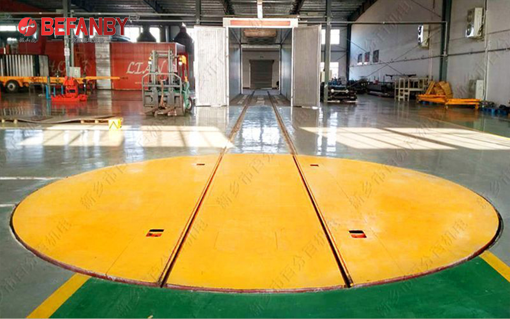 現(xiàn)在很多的工廠生產(chǎn)過程當中,有許多多地方需要的轉(zhuǎn)彎半徑過小或者沒法鋪設(shè)彎軌的情況或是拐角處,電動換軌轉(zhuǎn)盤非常適應(yīng)這樣的工況。