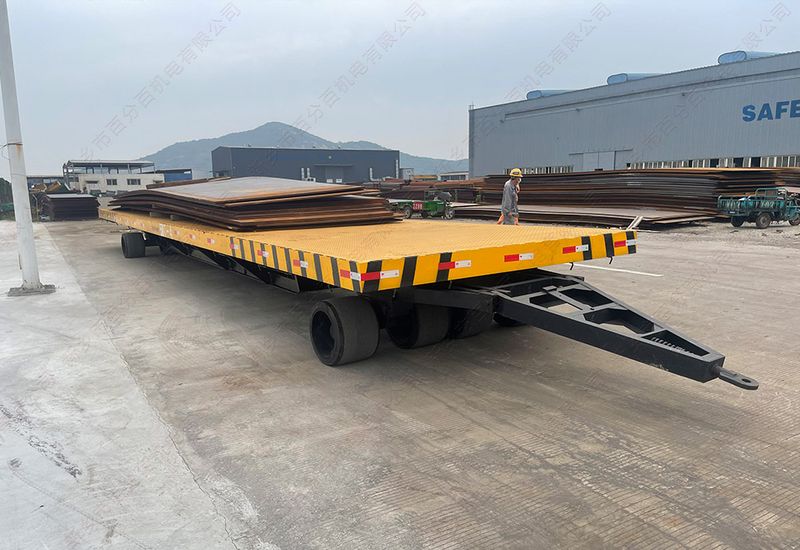 50噸工業(yè)用平板車拖車為全掛式平板拖車,主要用于車間、碼頭、倉庫、物流中心貨物周轉(zhuǎn)運(yùn)輸??梢杂貌孳嚑恳侠笮?、重型貨物,5噸以上的叉車可以拖拉載重為50噸左右的平板拖車。全掛式平板拖車結(jié)構(gòu)簡單,承載力強(qiáng),使用范圍廣泛,可以大大提高工作效率。